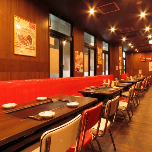 There are plenty of spacious table seats available inside the restaurant.The appeal of this style is that everyone can gather around the hot plate and have fun together.It's perfect for dining with family and friends, as well as for after-work drinks.Enjoy freshly grilled okonomiyaki to your heart's content in a comfortable seating area.